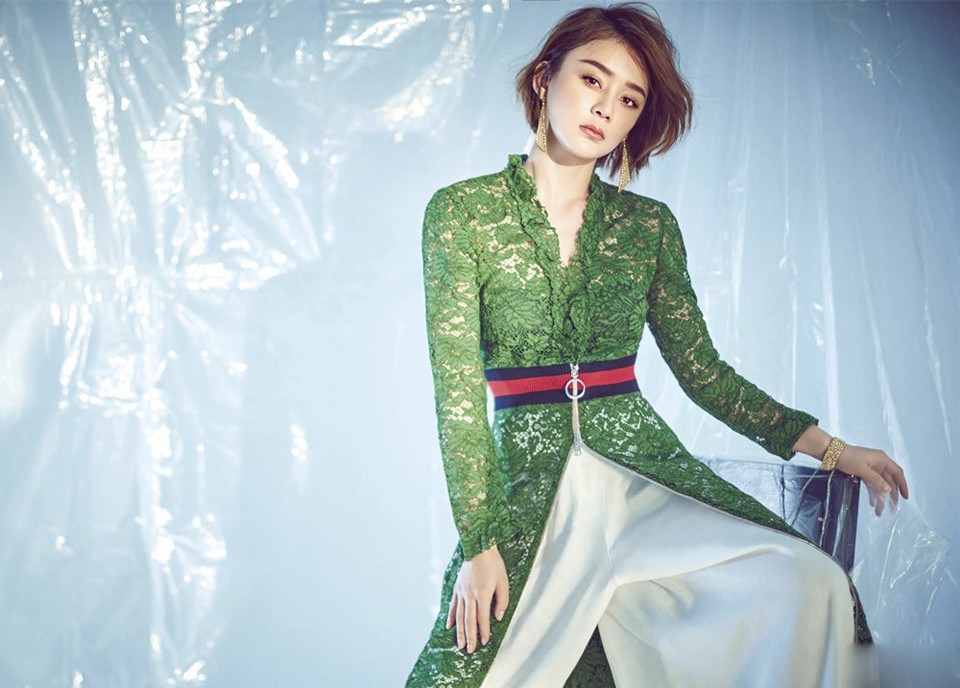 袁姗姗皎洁如月香肩微露演绎时尚封面新美学
